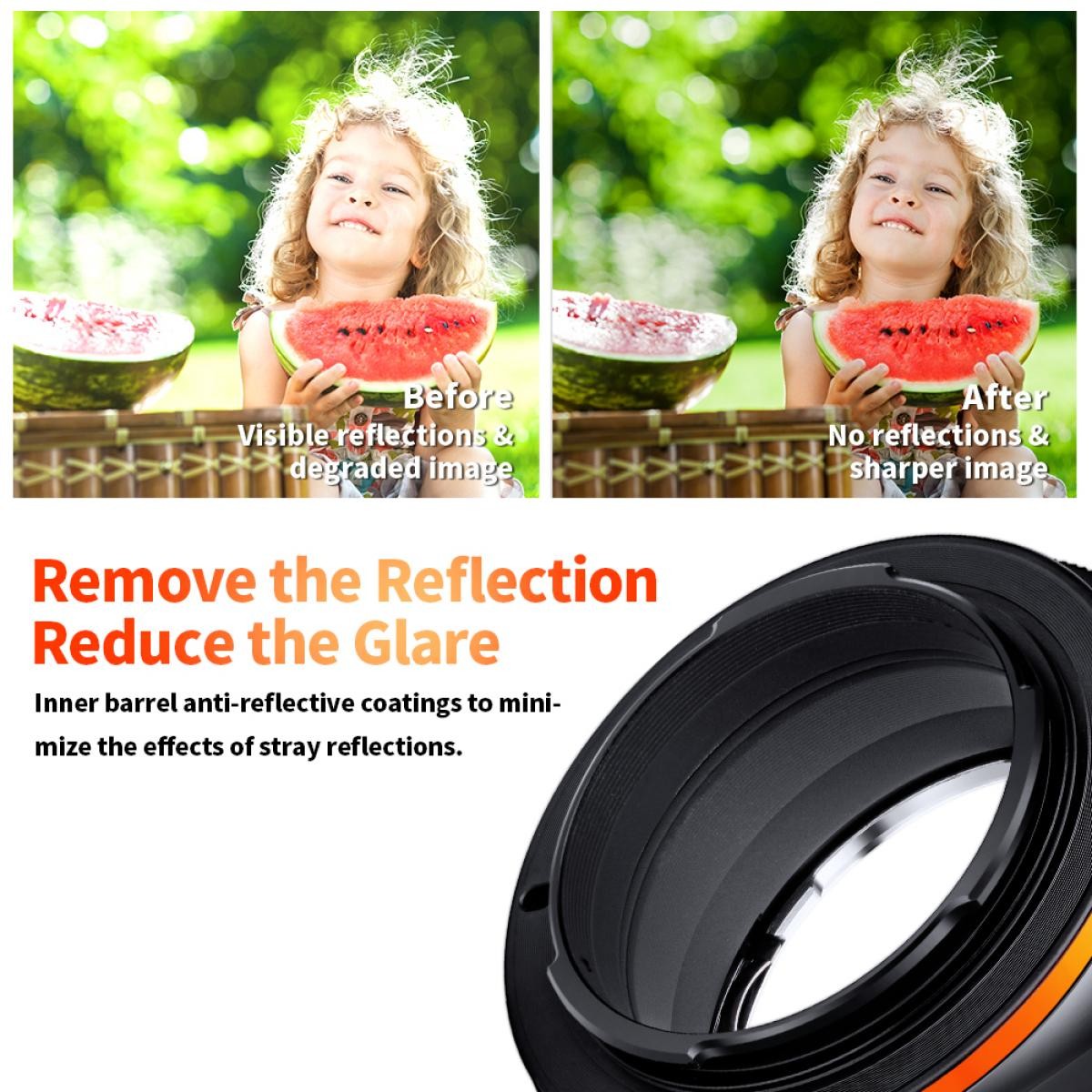 Der K&F Concept C/Y-NEX-Adapter für manuelles Fokussieren ist kompatibel mit Contax-/Yashica-Objektiven (C/Y) für Kameras mit NEX E-Mount-Bajonett.