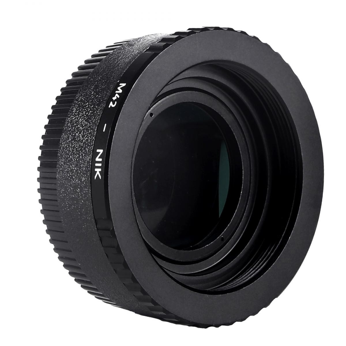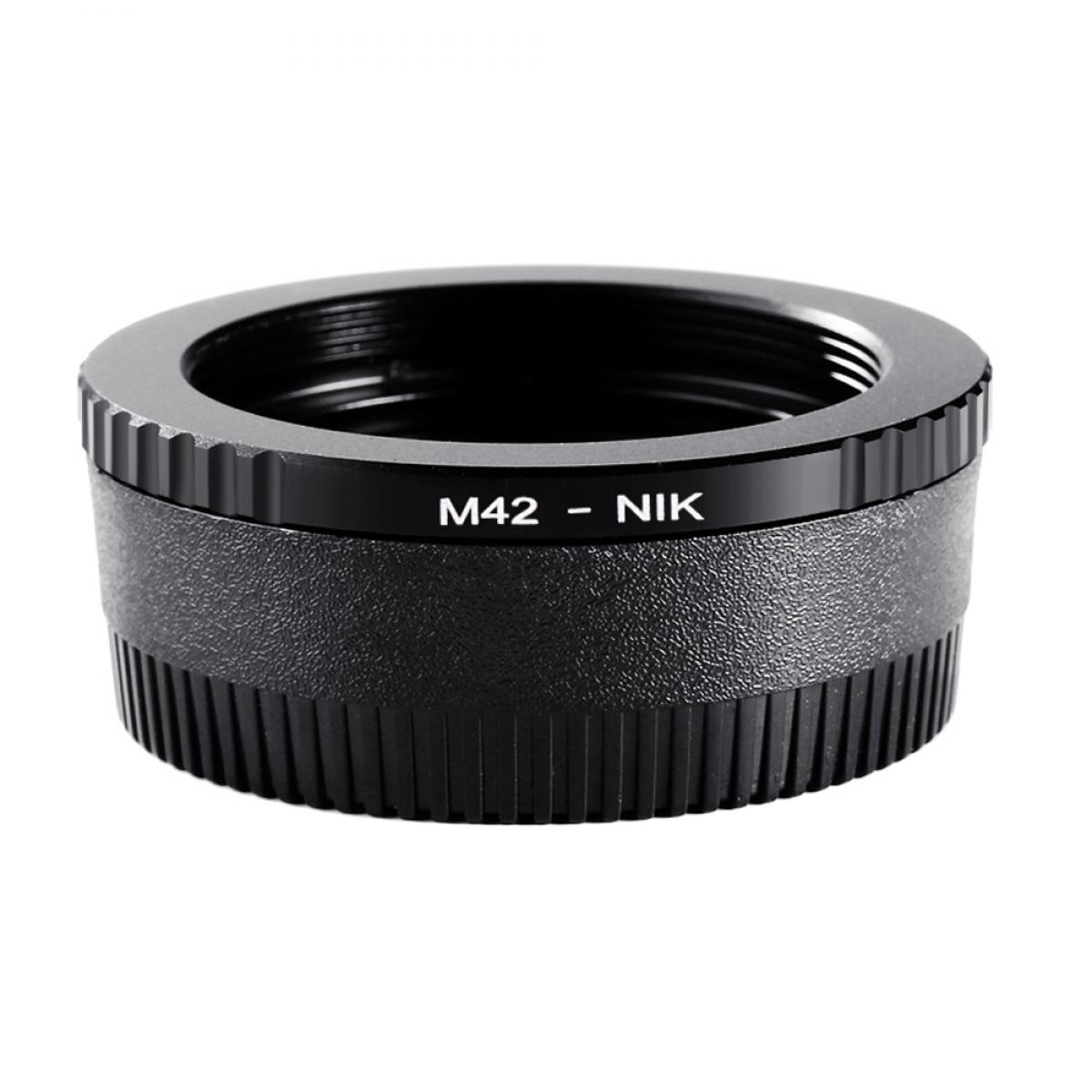 Der K&F M42-zu-Nikon-Objektivadapter mit optischem Glas ermöglicht die Verwendung von Objektiven mit M42-Anschluss an Nikon-DSLR-Kameras. Er zeichnet sich durch eine robuste Konstruktion aus Messing und Aluminium, eine präzise manuelle Bedienung und integriertes optisches Glas für Unendlich-Fokus aus.