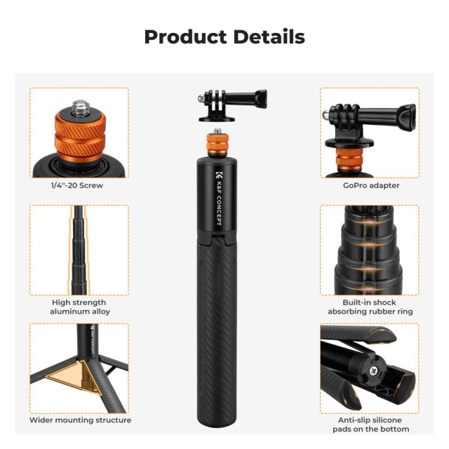 K&F Concept Invisible Selfie Stick, Verlängerung Long Pole(120cm/47.2in) für Insta360 Sportkamera GoPro DJI Action, 1/4" verlängertes Einbeinstativ mit GoPro Adapter.