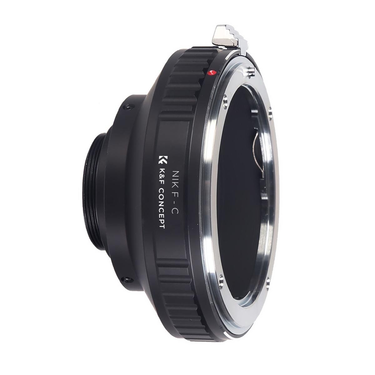 Der K&F Nikon AI-zu-C-Mount-Objektivadapter ermöglicht die Verwendung von Nikon-F-Mount-Objektiven an C-Mount-Kinokameras, Camcordern und anderen optischen Geräten. Er besteht aus Messing und Aluminium und bietet eine stabile, präzise Verbindung mit vollständiger manueller Bedienung.