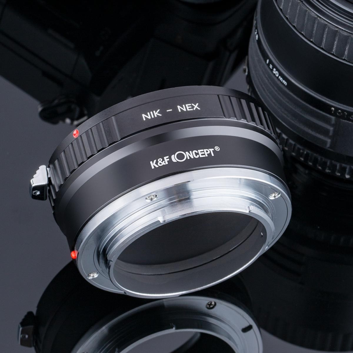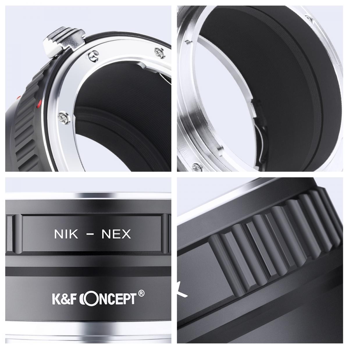 Mit dem K&F Concept Nikon AI zu Sony E-Mount Kupfer-Objektivadapter können Sie Nikon F/AI-Objektive an spiegellosen Sony E-Mount-Kameras befestigen. Er bietet eine robuste Vollmetallkonstruktion, manuelle Bedienung und Unterstützung für Unendlichkeitsfokus.