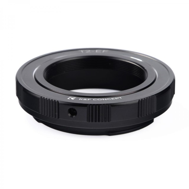 Der K&F T2-zu-Canon-EOS-Mount-Adapter ermöglicht die Verwendung von T2-Mount-Objektiven an Canon EOS DSLR-Kameras. Er zeichnet sich durch eine robuste Konstruktion aus Messing und Aluminium, vollständige manuelle Steuerung und Unterstützung für Unendlich-Fokus aus.