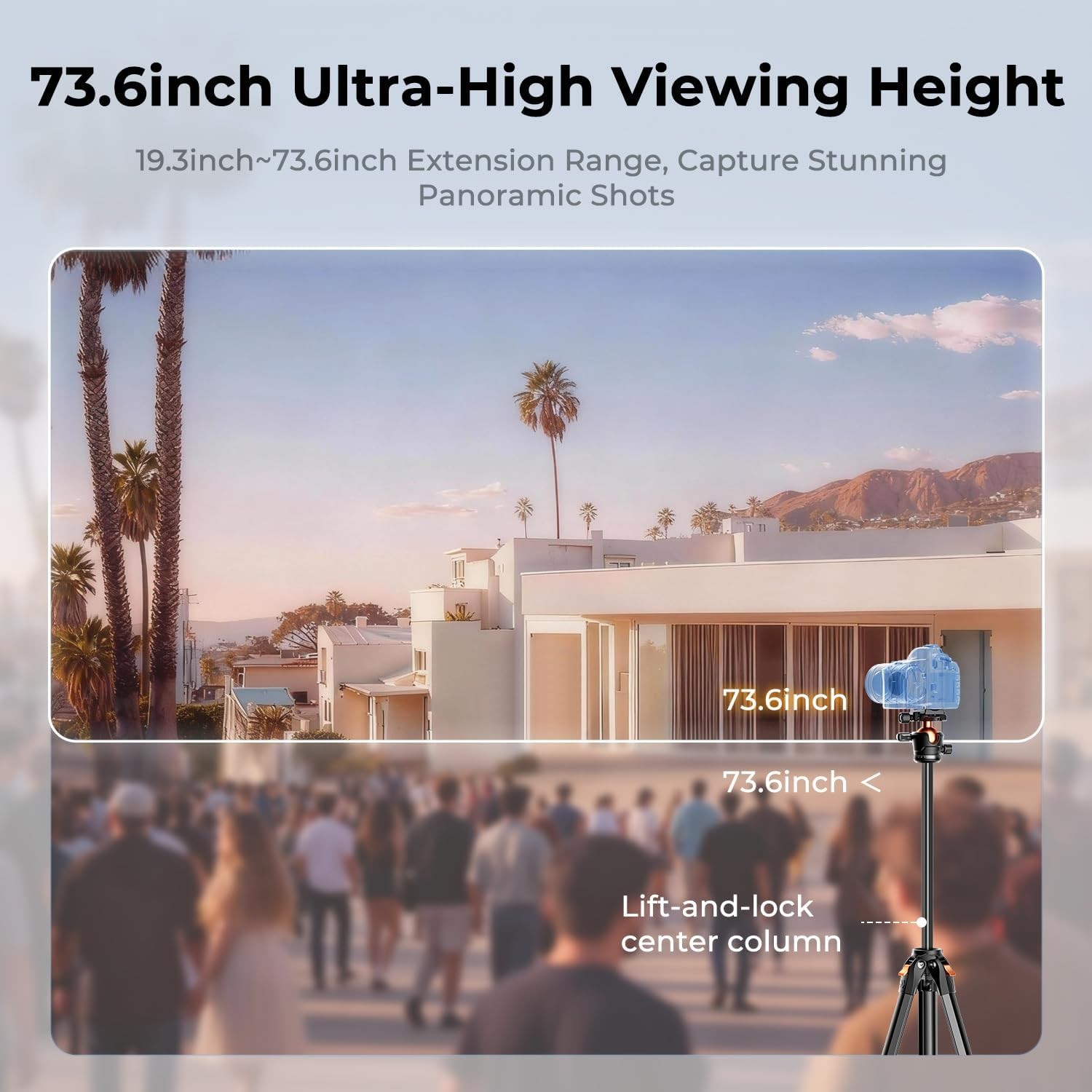 Ausgestattet mit einem professionellen 40-mm-Kugelkopf ermöglicht das Stativ eine reibungslose 360°-Panorama-Drehung und präzise Positionierung mit einer Neigung von 90° für vertikale (Porträt-)Aufnahmen. Die umkehrbare Mittelsäule ermöglicht Aufnahmen aus niedrigen Winkeln und Makrofotografie, während der integrierte Haken das Hinzufügen eines Gegengewichts für zusätzliche Stabilität bei windigen Bedingungen ermöglicht. Das A305A3+BH-40 lässt sich auf eine kompakte Größe zusammenklappen, die dem Durchmesser einer Wasserflasche ähnelt, und passt problemlos in das Handgepäck, was es ideal für Reisefotografen und Vlogger macht. Dank seiner breiten Kompatibilität über eine 1/4"-Schnellwechselplatte und den mitgelieferten Smartphone-/Tablet-Halter ist dieses Stativ eine vielseitige Lösung für Kameras und Smart-Geräte gleichermaßen.
