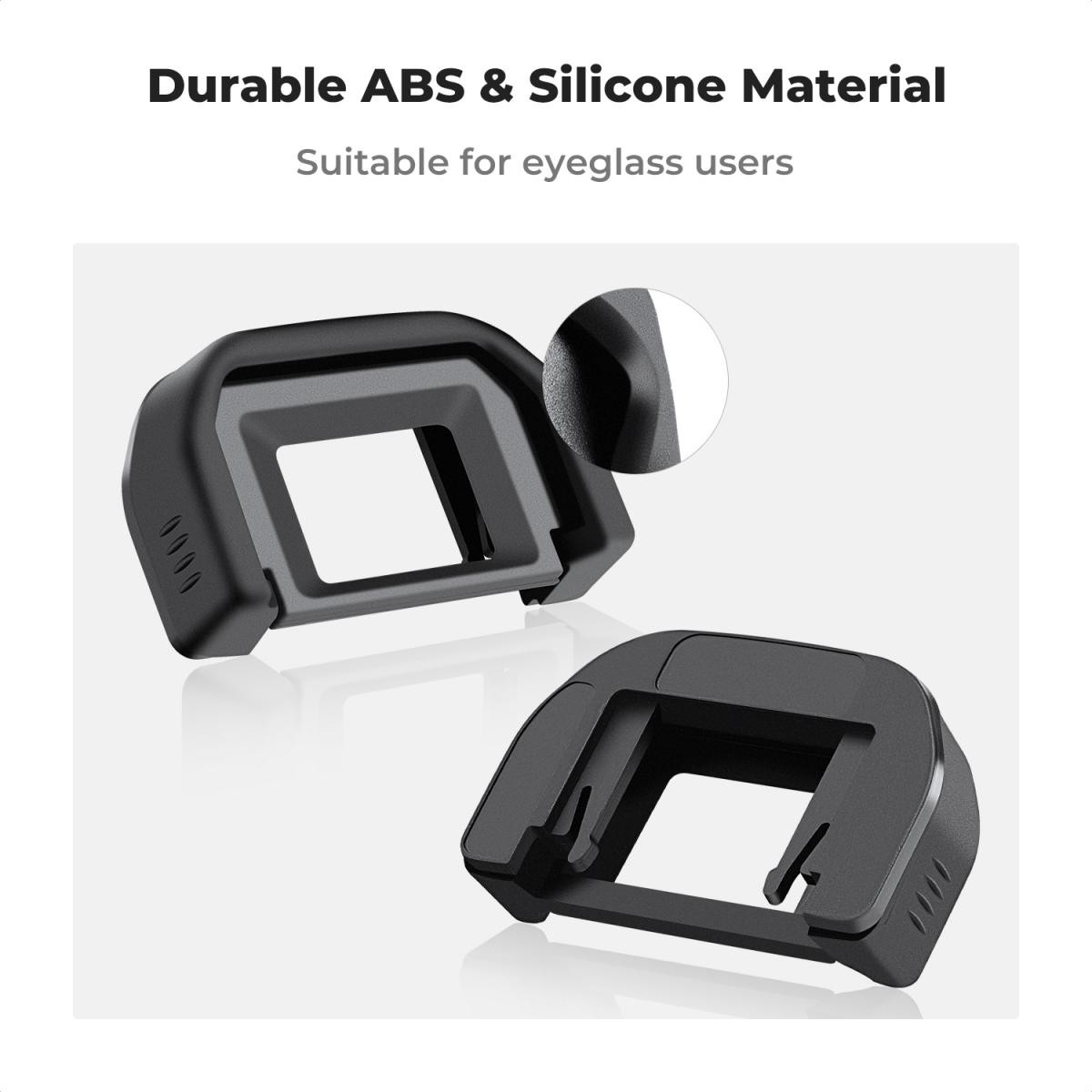 Die beiden mitgelieferten hochwertigen Sucheraugenmuscheln verhindern das Eindringen von Streulicht in den Sucher und ermöglichen so eine klarere und fokussiertere Sicht – besonders nützlich bei Aufnahmen im Freien oder in hellen Umgebungen. Die aus strapazierfähigem ABS und weichem Silikon gefertigten Augenmuscheln schützen den Sucher außerdem vor Kratzern, Stößen und täglicher Abnutzung.