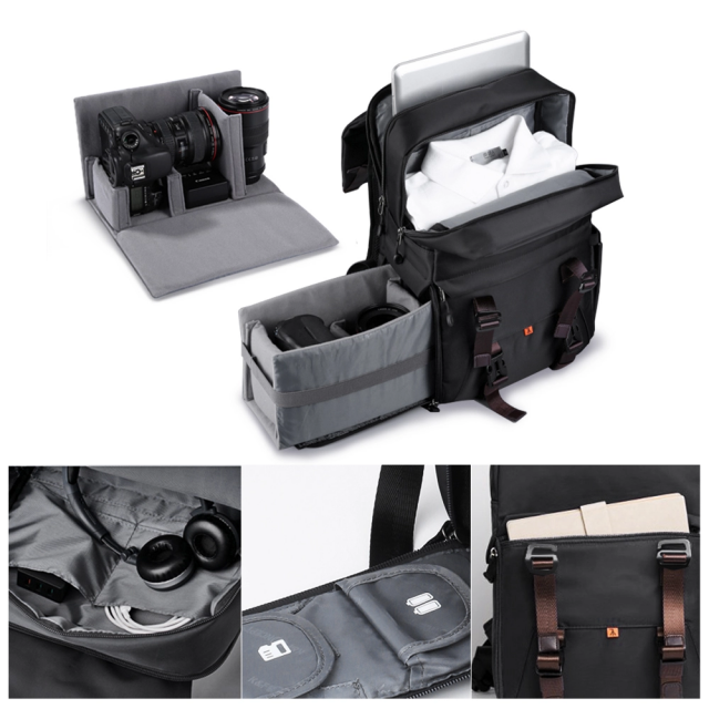 Tasche mit großem Fassungsvermögen für Kamera, 2 Objektive und 15,6"-Laptop