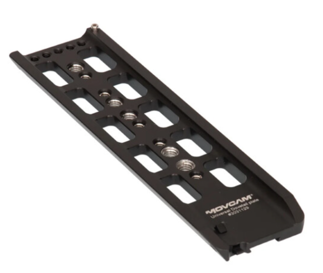 Die Kinefinity Movcam Sliding Dovetail Plate (A601-917-01) ist eine 10-Zoll-Basisplatte aus leichtem Metall für KineKIT-Edge-Käfige auf MAVO Edge 8K/6K. Mit 5× 3/8"-16 + 10× 1/4"-20 Gewinden, festem Sicherheitsstift vorne und Druckknopfentriegelung hinten – ideal für schnelles Ausbalancieren von Gimbal/Stativ.