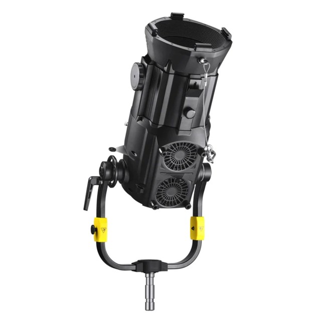 Sein branchenführendes Linsensystem liefert scharfe, klare und abberationsfreie Projektionen und eignet sich somit ideal für Studio-, Film-, Werbe- und Theateranwendungen. Die integrierten Blendenlamellen ermöglichen eine präzise Strahlformung, während die mitgelieferten Gobos die Erstellung natürlicher, dramatischer oder abstrakter Lichtmuster wie Fensterlicht oder Laubschatten ermöglichen. Eine optionale Irisblende verfeinert die Steuerung der Spotgröße zusätzlich.