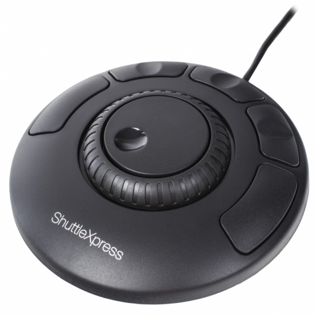 Der Contour Design ShuttleXpress hat 5 programmierbare Tasten und ein Jog- und Shuttle-Rad mit 7 Geschwindigkeitsstufen. Mit einer einfachen App, die im Hintergrund läuft, können Sie die Eigenschaften der einzelnen Schaltflächen jederzeit ändern
