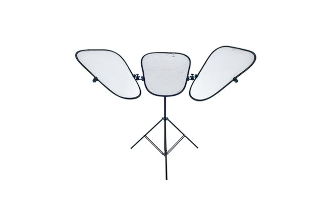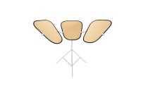 Komplettes Set: Rahmen, Stativ und 3 Reflektorpaneele im Lieferumfang enthalten
