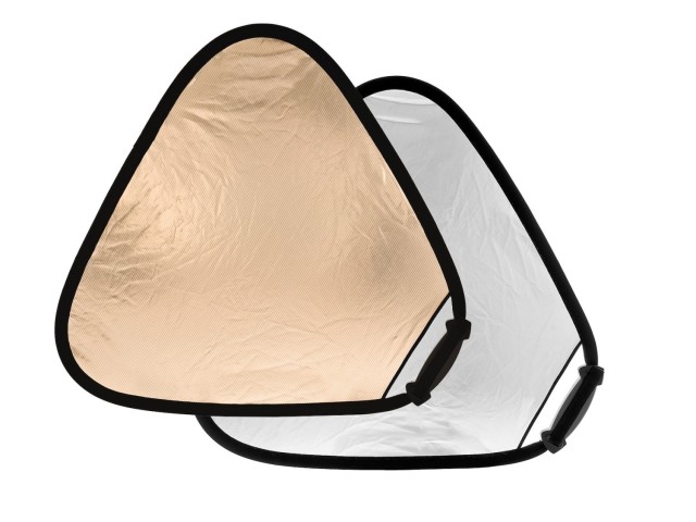 Der Lastolite TriGrip Reflektor 75 cm Sunfire/Silber ist ein dreieckiger, zusammenklappbarer Handreflektor, der warmes oder kontrastreiches reflektiertes Licht erzeugt und sich ideal für Porträt- und allgemeine Fotografie eignet.