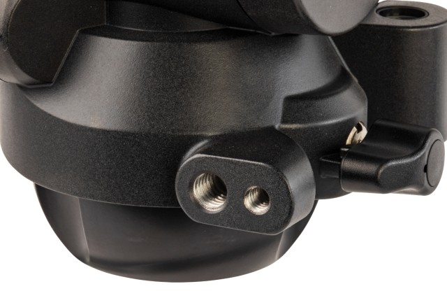 Wenn der Schnellverschluss gelöst wird, fahren die Beine ohne Widerstand aus, so dass das Stativ schnell und reibungslos aufgebaut werden kann. An drei Seiten des Stativfußes befinden sich Zubehöranschlüsse mit 1/4"- und 3/8"-Gewinde, an denen sich Zubehör wie Monitore und Leuchten bequem und sicher befestigen lassen. Aus Sicherheitsgründen sind die Stativbeine so konstruiert, dass sich der Benutzer beim beabsichtigten oder unbeabsichtigten Zusammenklappen des Stativs nicht die Finger einklemmen kann.