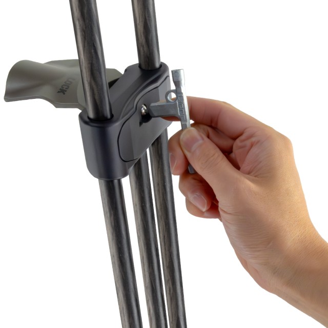 Mit dem mitgelieferten Werkzeug lässt sichdie Festigkeit der Stativverriegelung leichteinstellen. Der Hauptvorteil besteht darin, dassder Verriegelungsmechanismus der Beine weniger anfällig für ein Lösen istalsbei herkömmlichen Schnellverriegelungsstativen.