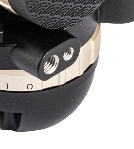 Der doppelte Kopf ist sowohl mit einer 75-mm-Halbkugel als auch mit einer flachen Stativbasis kompatibel. Er kann an Slidern, Kamerawagen und anderen Geräten befestigt werden.