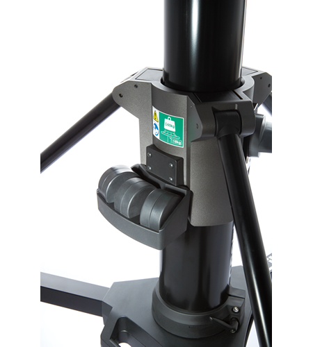 QH3-Kopf (150 mm) und P1000-Sockel. Tragfähigkeit 47 kg, Gewicht 39 kg, Höhe 91,5 - 173 cm.
