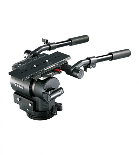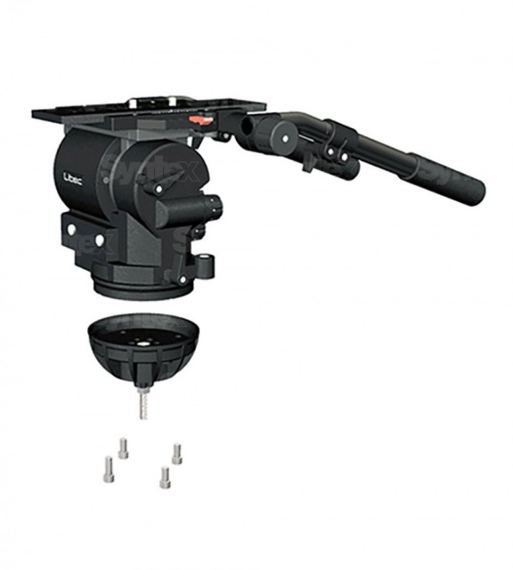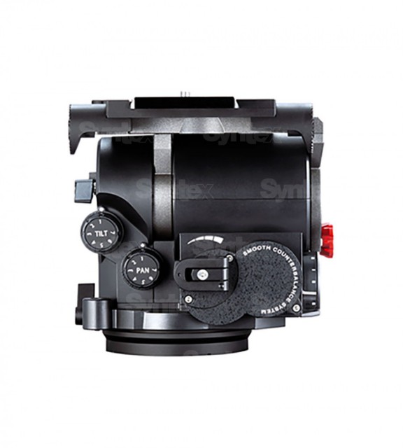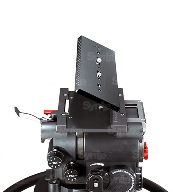 Moderner Kopf für Studiokameras mit Schnellwechselplatte. Tragkraft 40 kg, kontinuierlicher Gegengewichtsbereich 15 - 35 kg, Neigung +90° / -70°, Plattenverschiebung +/-75 mm, Gewicht 12,7 kg. Befestigung der Kamera mit zwei 3/8"-Schrauben.