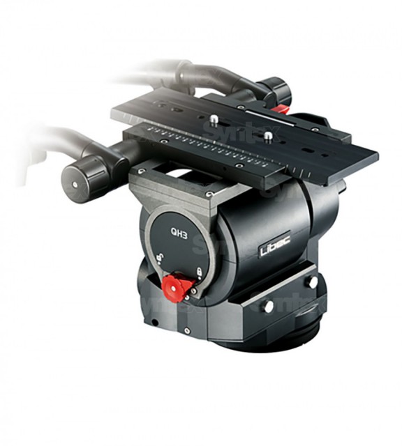 Moderner Kopf für Studiokameras mit Schnellwechselplatte. Tragfähigkeit 69 kg, stufenloser Gegengewichtsbereich 28 - 65 kg, Neigung +90° / -70°, Plattenverschiebung +/-75 mm, Gewicht 12,7 kg. Befestigung der Kamera mit zwei 3/8"-Schrauben.