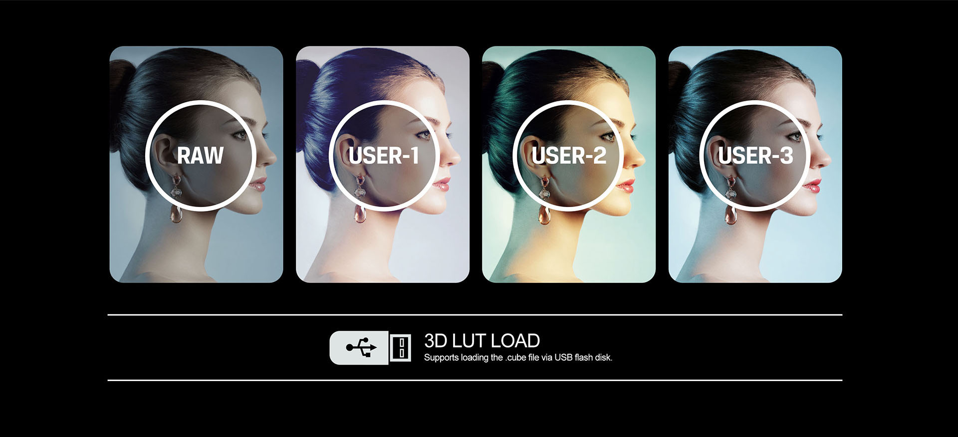 | Unterstützung von Look up tables (LUT) | 3D LUT (.cube Format) |