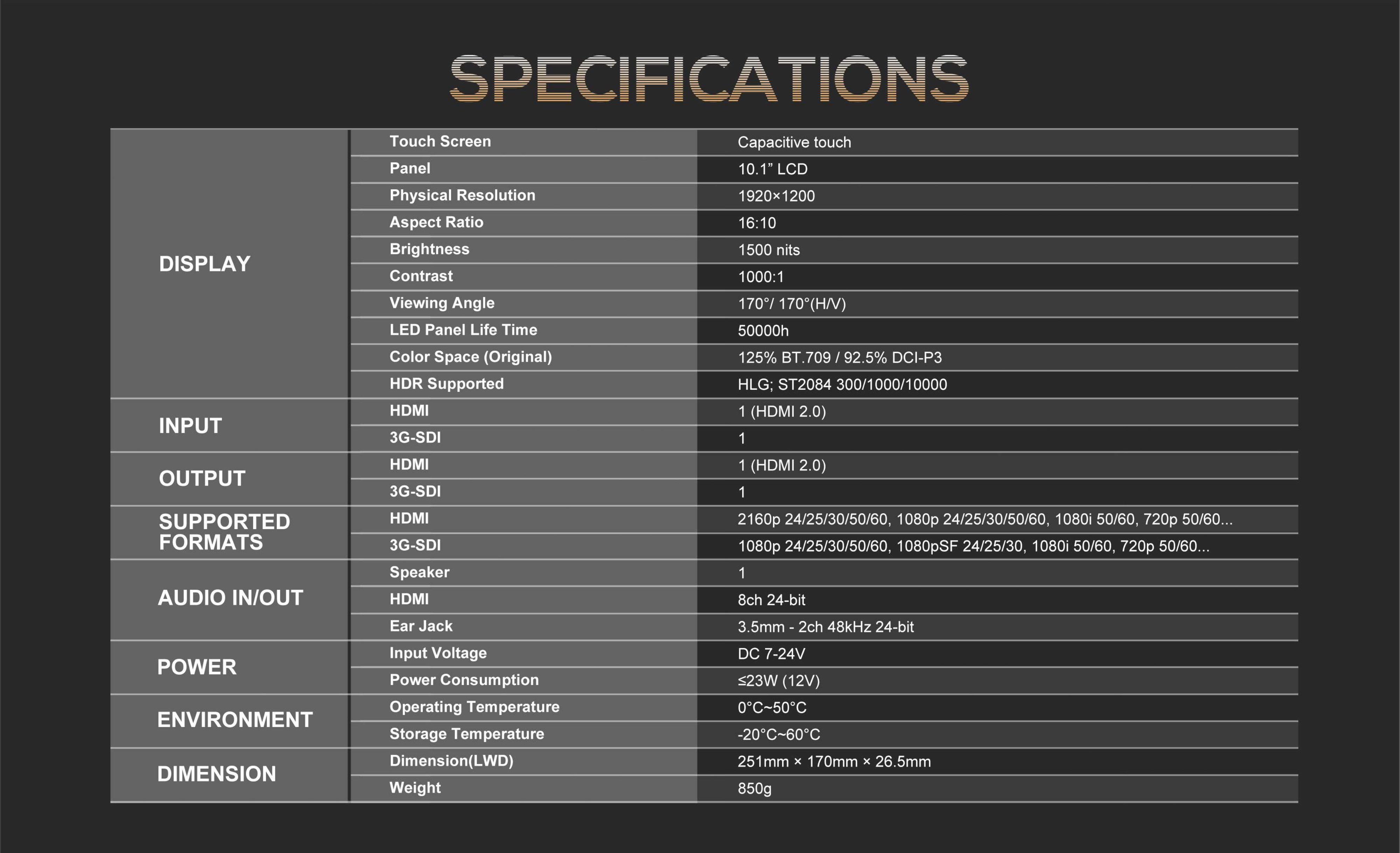 HT10S 10.1" Ultra High 1500 Nits Helligkeit Touch On-Camera Control Monitor