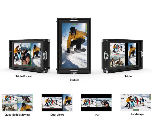 Dank dedizierter Loop-Out- und PGM/LUT-Ausgangsoptionen über SDI und HDMI können Anwender den Monitor nahtlos in komplexe Produktionspipelines integrieren. Integrierte Lautsprecher, ein Kopfhörerausgang und umfassende Audio-Unterstützung verbessern die Benutzerfreundlichkeit zusätzlich. Der Monitor bietet flexible Stromversorgungsoptionen, darunter einen DC-Eingang und Kompatibilität mit V-Lock- oder Anton-Bauer-Akkus, wodurch er sich ideal für den Einsatz im Studio und vor Ort eignet.