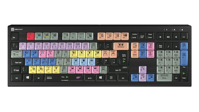 Die dedizierte Logiktastatur von Grass Valley Edius verfügt ebenfalls über alle regulären Buchstaben, Zahlen und Symbolbeschriftungen, die Sie auf einer herkömmlichen Tastatur finden, sie kann einfach als Ersatz dafür verwendet werden. Die Tastatur ist einfach anzuschließen und erfordert keine Softwareinstallation.