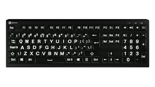 Logiktastatur mit Hintergrundbeleuchtung und Großdruck - Weiß auf Schwarz. Hergestellt für Windows PC