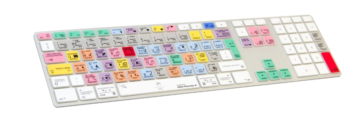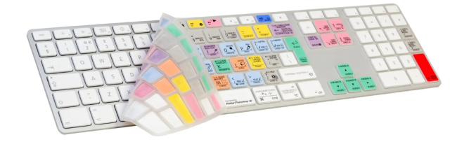 Die Logickeyboard Photoshop CC Mac-Tastaturfolie ist eine dünne, farblich gekennzeichnete Silikonfolie, die speziell für Apple Ultra Thin-Tastaturen entwickelt wurde. Sie bietet deutlich beschriftete Tastenkombinationen für Adobe Photoshop CC und schützt Ihre Tastatur gleichzeitig vor Staub, Flüssigkeiten und Abnutzung.