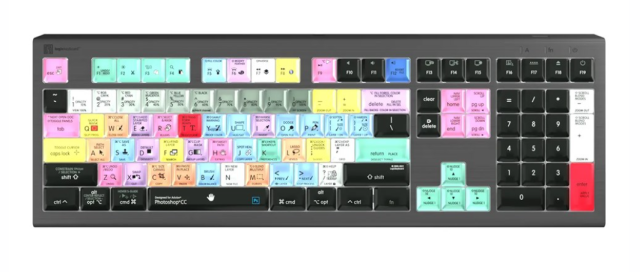 Die Logickeyboard Adobe Photoshop CC Astra 2 Mac-Tastatur ist das ultimative Werkzeug für Photoshop-Profis und -Enthusiasten und wurde entwickelt, um Ihre Bearbeitungsgeschwindigkeit und -genauigkeit zu steigern. Diese Spezialtastatur verfügt über mehr als 140 Photoshop CC-Tastenkombinationen mit klarer, farbcodierter Beschriftung direkt auf den Tasten, was einen intuitiven, schnellen Zugriff ermöglicht, ohne dass Sie sich durch komplexe Menüs navigieren oder Befehle auswendig lernen müssen.