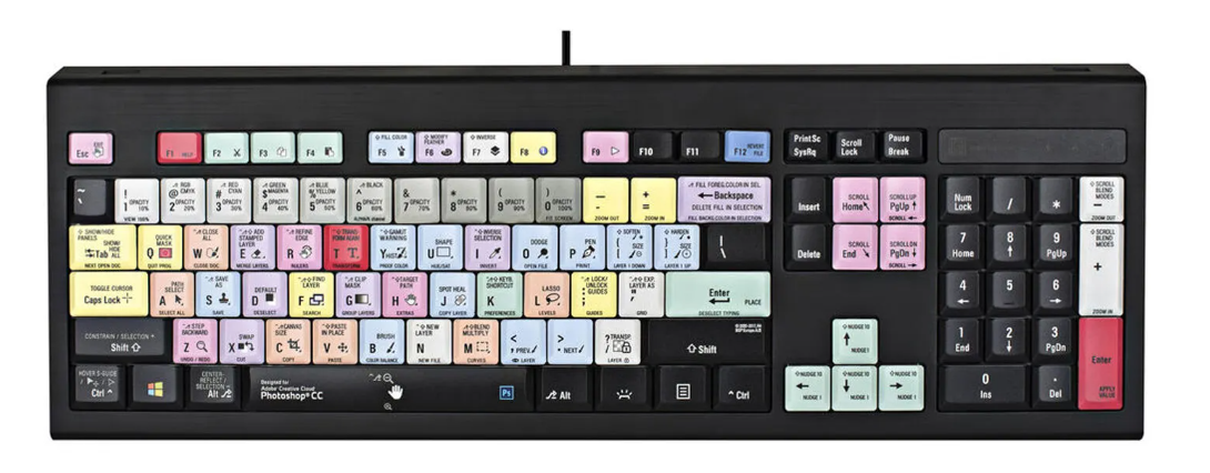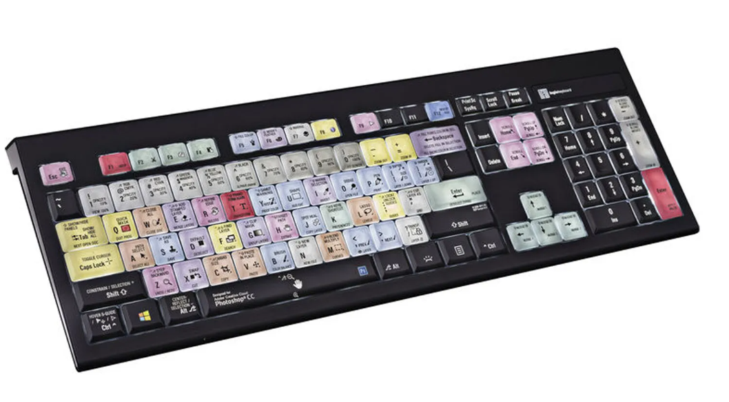Die Logickeyboard Adobe Premiere & Photoshop CC PC Backlit ASTRA2-Tastatur ist ein leistungsstarkes Werkzeug für Kreative, die mit Adobe Premiere Pro CC und Adobe Photoshop CC arbeiten. Sie wurde zur Steigerung der Produktivität entwickelt und verfügt über klar beschriftete, farbcodierte Tastenkombinationen mit grafischen Befehlen, die Ihnen sofortigen Zugriff auf wichtige Funktionen ermöglichen und die Abhängigkeit von komplexen Menüs verringern.