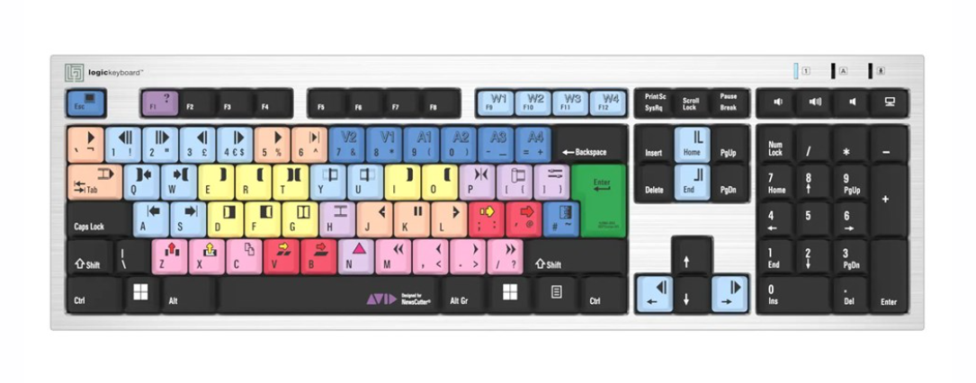 Die Logickeyboard Avid NewsCutter Slim Line PC-Tastatur wurde speziell für Cutter und Postproduktionsprofis entwickelt, die mit Avid NewsCutter arbeiten. Diese schlanke Tastatur verfügt über mehr als 50 intuitive, farbcodierte Tastenkombinationen, mit denen Sie NewsCutter schnell und effizient steuern können. Da alle wichtigen Befehle direkt auf den Tasten abgebildet sind, müssen Sie sich keine Tastenkombinationen mehr merken, was zu höherer Produktivität und schnellerer Bearbeitung führt.
