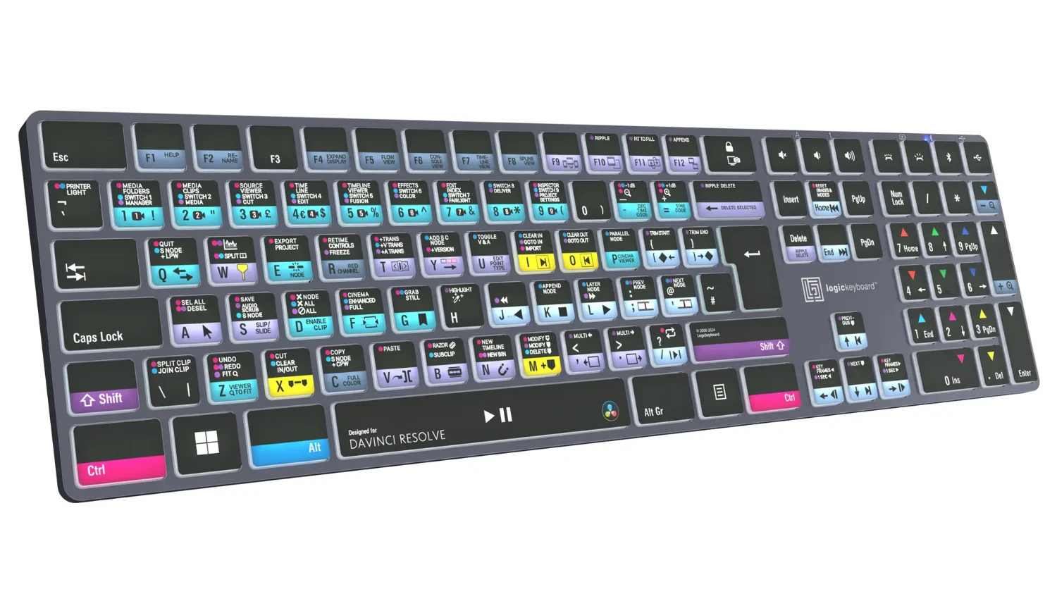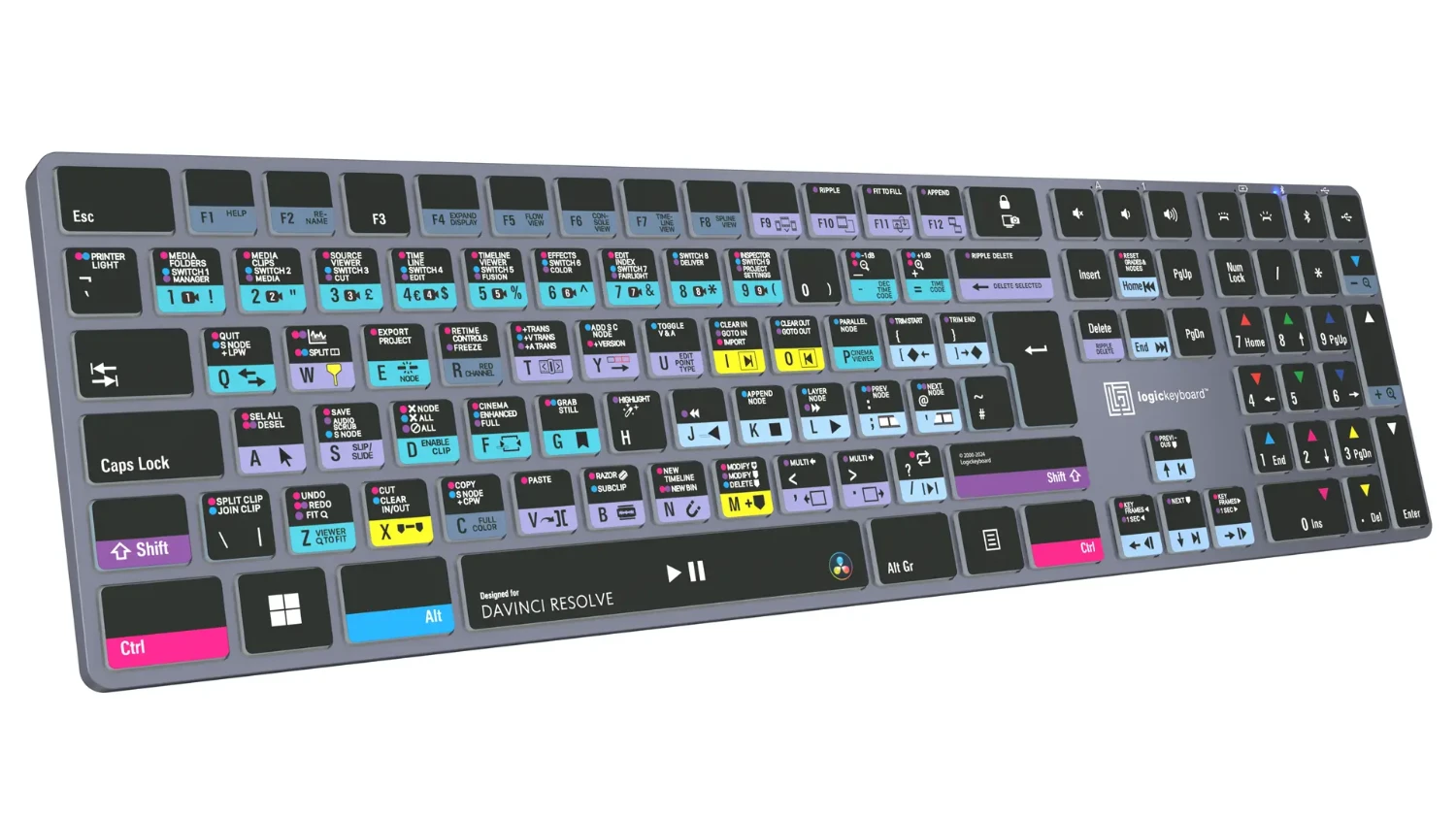 Dieses Logickeyboard ist Ihre erste Wahl für die Bearbeitung in DaVinci Resolve. Dank der auf den Tasten angegebenen Shortcut-Befehle und ihrer farbcodierten Definitionen werden Sie im Handumdrehen zum Meister der Steuerung von DaVinci Resolve. Das Logickeyboard ist ideal für Postproduktionsstudios, professionelle Schnittstudios und alle anderen, die intensiv mit DaVinci Resolve arbeiten.