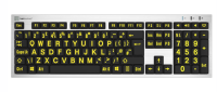 Die PC-Tastatur „Logickeyboard XLPrint Slim Line Yellow on Black“ ist eine gut lesbare