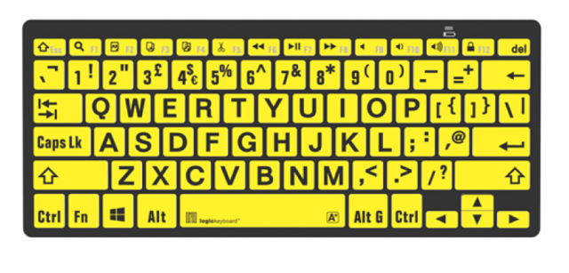 Die XLPrint Bluetooth-Tastatur in Schwarz auf Gelb (UK-Layout) von Logickeyboard ist die branchenweit erste Bluetooth-Minitastatur mit großer Schrift, die speziell für sehbehinderte und ältere Nutzer entwickelt wurde. Dank der kontrastreichen schwarzen Buchstaben auf gelbem Hintergrund verbessert sie die Lesbarkeit, verringert Tippfehler und schont die Augen.