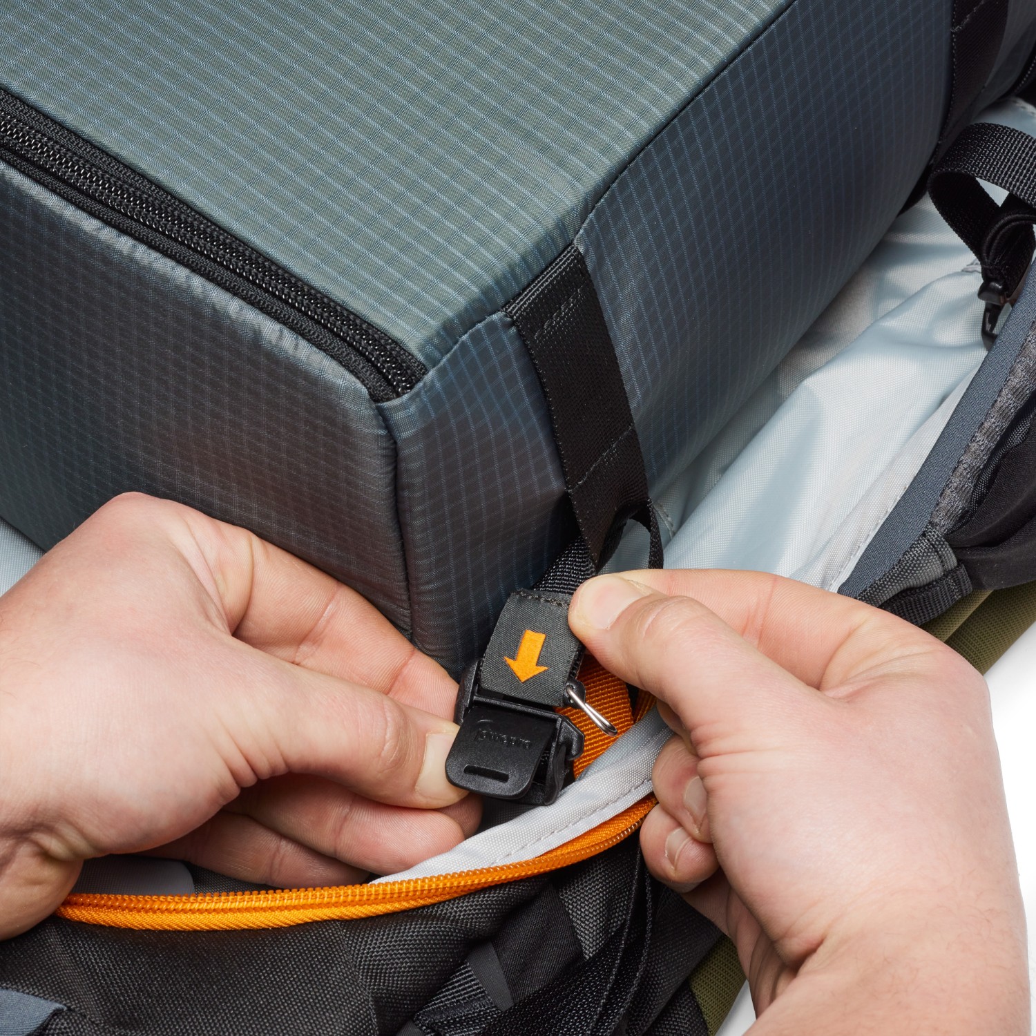Er ist nahtlos auf die GearUP Pro Camera Boxes (L, XL und XXL) abgestimmt und bietet Kompatibilität mit herausnehmbaren, gefederten Kameraeinsätzen für zusätzlichen Schutz und Stabilisierung Ihrer Ausrüstung. Der praktische Rückzug ermöglicht einen schnellen Zugriff auf die Ausrüstung, ohne den Rucksack abnehmen zu müssen, während bergsteigerspezifische Funktionen – wie Eispickelschlaufen, Seilbefestigungen und eine Helmhalterung – ihn ideal für alpine Einsätze mit vielfältigen Aktivitäten machen.