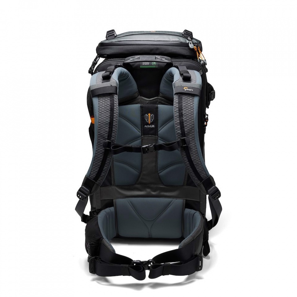 Der Tragekomfort wird durch ein verstellbares Tragesystem mit zweistufiger Polsterung erhöht, das aus der Photosport Pro-Serie übernommen wurde und durch das ActivLift™-System ergänzt wird, mit dem die Länge des Rückenteils angepasst werden kann, um einen idealen Sitz des Rucksacks am Körper zu erreichen.