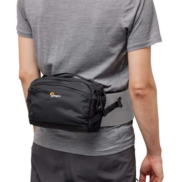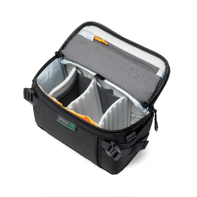 Die ProTactic Lite SLX 110 AW III, Teil der ProTactic III-Kollektion von Lowepro, ist eine vielseitige Sling- oder Schultertasche für Fotografen. In diese Tasche passt eine spiegellose Vollformatkamera mit angesetztem 24-70 f2,8 und sie verfügt über Trennwände für kleinere Objektive und andere Ausrüstung. Sie kann als eigenständige Tasche oder als Einsatz in den ProTactic Lite-Rucksäcken verwendet werden.