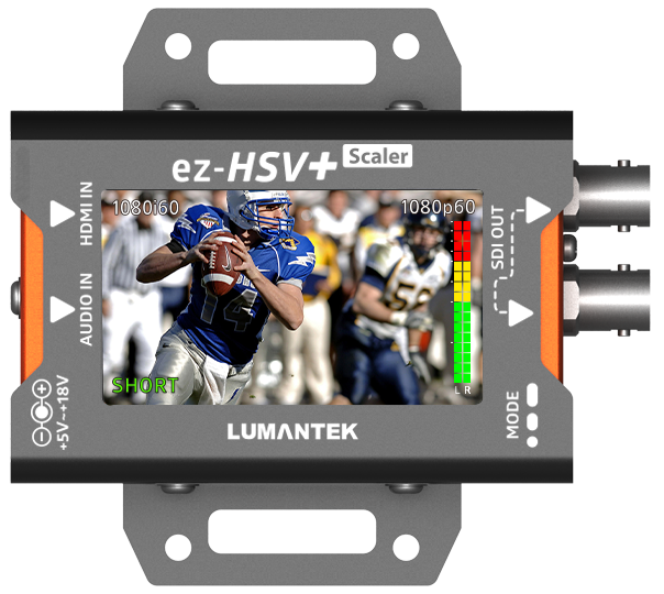Jetzt können Sie HDMI-Videos mit ez-HSV+ ansehen. Die Funktionen, die Sie steuern können, sind Audioleiste, eingehende Auflösung und reduzierte Auflösung. Der ez-HSV+ ist außerdem mit der Möglichkeit ausgestattet, externe Audiosignale einzufügen, wodurch Sie Ihren Produktionsplan bequemer planen können.