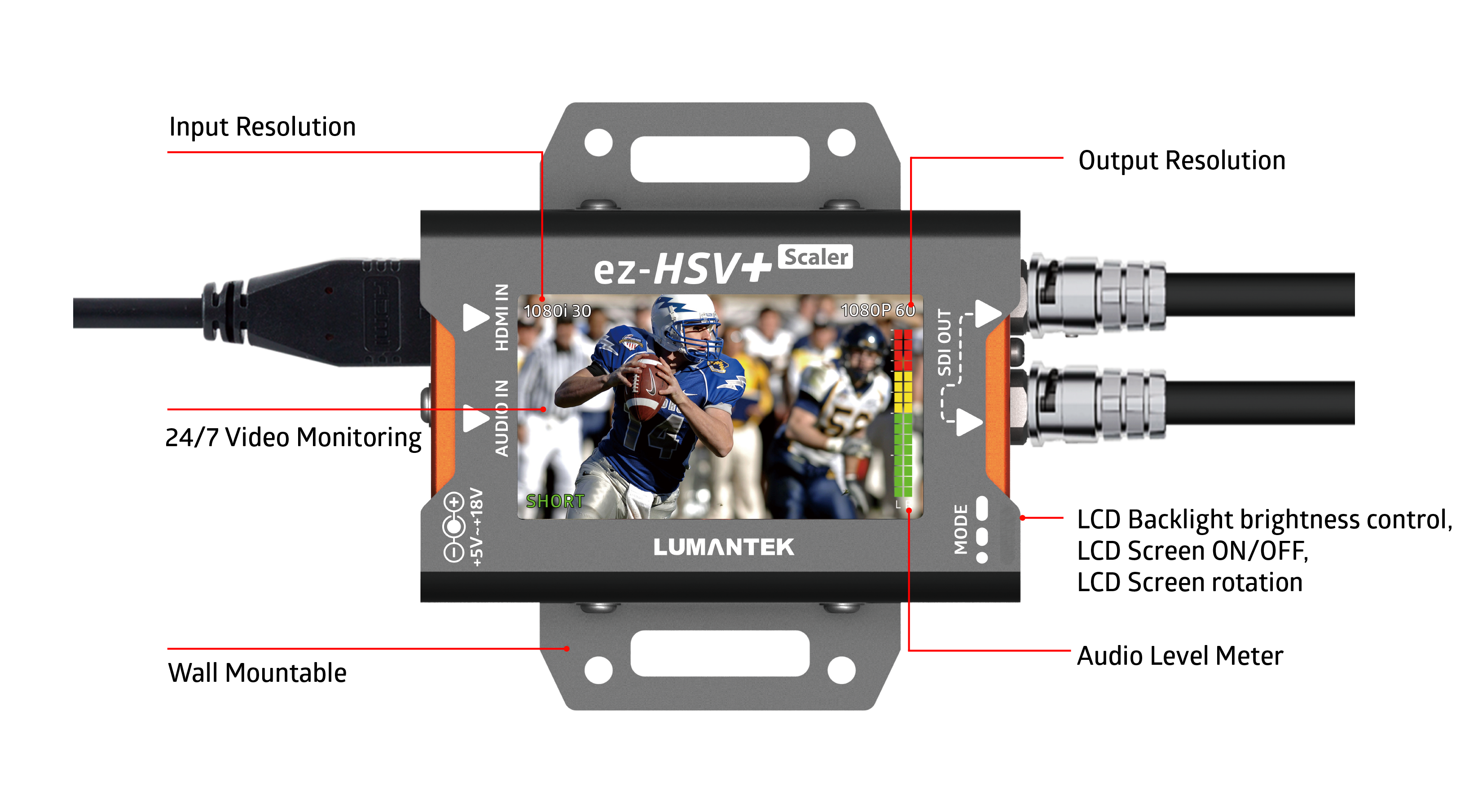 Lumantek HDMI to 3G/HD/SD-SDI Converter with LCD Display + Scaler