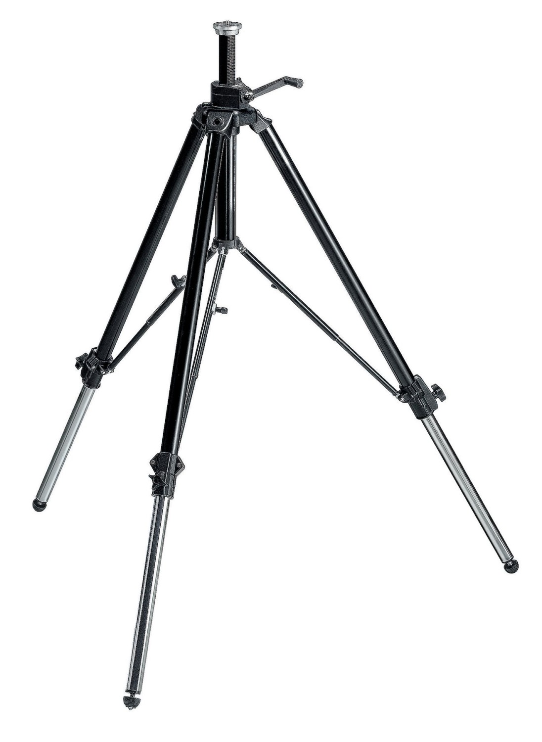 Die Stativbeine aus rostfreiem Stahl und die besonders stabilen Fußverriegelungen sind die richtige Wahl für Filmemacher überall. Es hat eine eingebaute Wasserwaage und einen Mittelabstandshalter mit Teleskoparmen. Wird mit Gummifüßen und ausziehbaren Metallspikes geliefert.