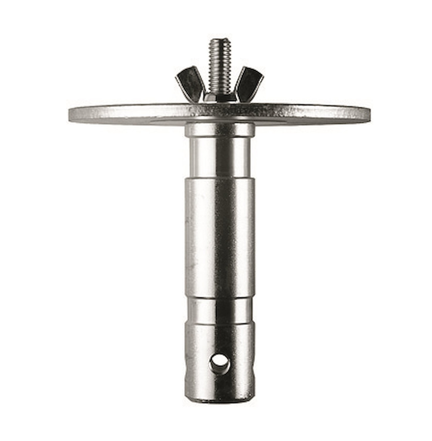 Der Manfrotto 163-10 ist ein hochbelastbarer 28 mm (1-1/8″) Junior-Steckadapter mit einer robusten M10-Gewindebasisplatte, einer Höhe von 14,5 cm und wurde entwickelt, um große Beleuchtungskörper, Greifarme oder Überkopfrahmen sicher auf ebenen Flächen oder M10-kompatiblen Stativen und Klemmen zu befestigen.