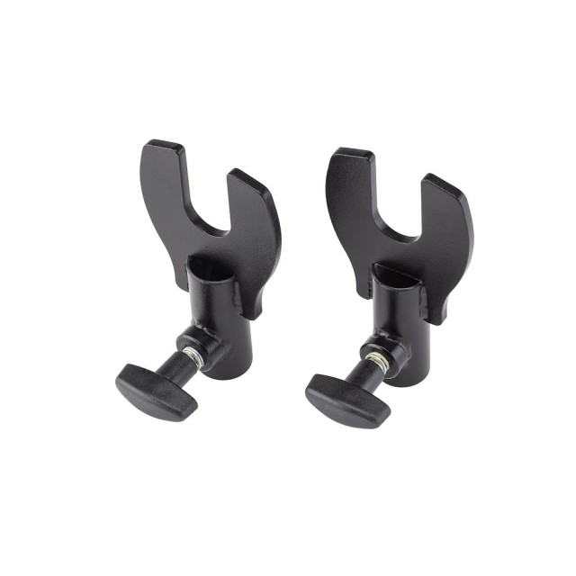 Die Manfrotto 081 Baby Hooks verwandeln jedes Lichtstativ mit einem 5/8"-Stift in eine absolut stabile Expan-Halterung. Jeder schwarz pulverbeschichtete Stahlhaken verfügt über eine U-förmige Halterung, die den Expan-Metallkern ohne Werkzeug arretiert, während ein federbelasteter Stift dafür sorgt, dass er auch unter Last nicht verrutscht. Sie werden paarweise geliefert und ermöglichen Einzel- oder Doppelstativaufbauten für Rollen mit einer Breite von bis zu 2,72 m.