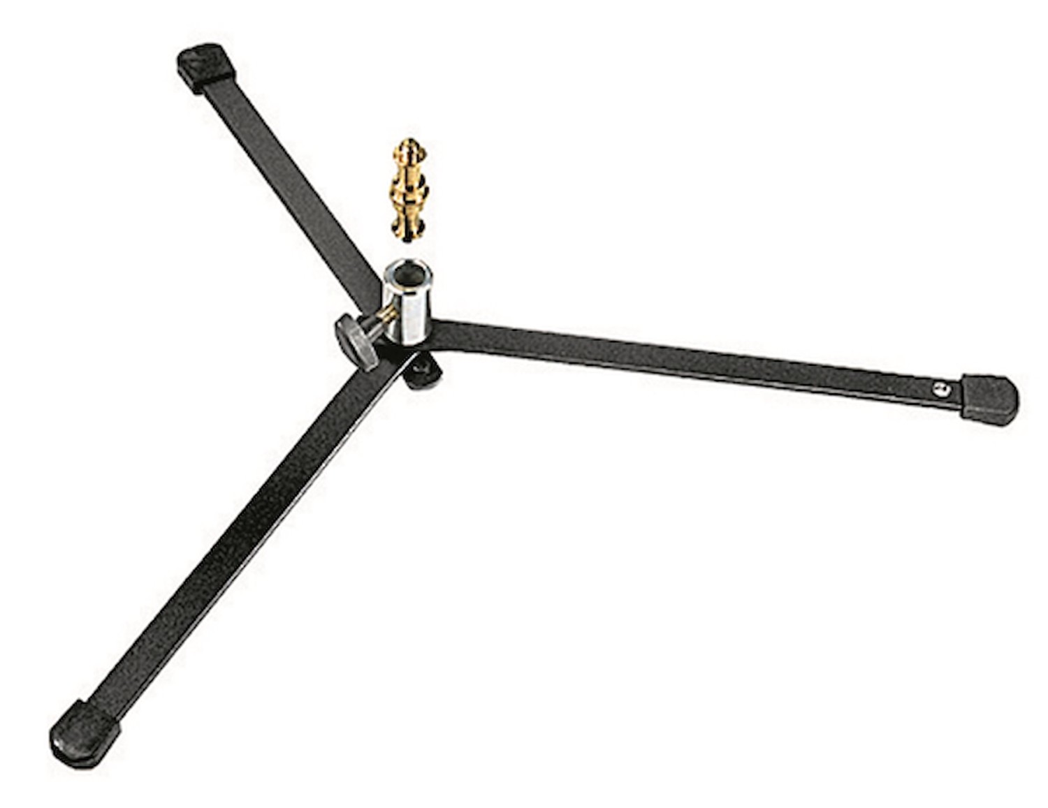 Die Manfrotto 003 Backlite Stand-Basis ist ein 500 g schwerer, schwarz pulverbeschichteter Stahlspinnenfuß mit drei klappbaren Beinen, die sich zur Aufbewahrung auf 34 cm zusammenklappen lassen. Die Standfläche von 60 cm sorgt für Stabilität bei Punktlasten von bis zu 15 kg, während der zentrale 16-mm-Innenflansch (5/8") für alle gängigen Babybolzen oder Säulen (z. B. C-Stand-Riser) geeignet ist. Der mitgelieferte Adapter 013 (1/4"-20 auf 5/8") ermöglicht die direkte Befestigung einer Kamera oder einer kleinen Leuchte. Perfekt für Randbeleuchtung, Kicker oder Produkttischaufbauten in Studios oder an Orten, an denen die Höhe minimal und die Bodenfläche begrenzt ist – kombinieren Sie ihn mit einer kurzen Stange für eine einstellbare Höhe.
