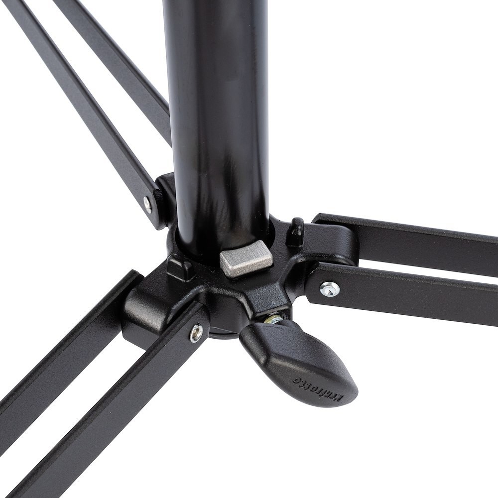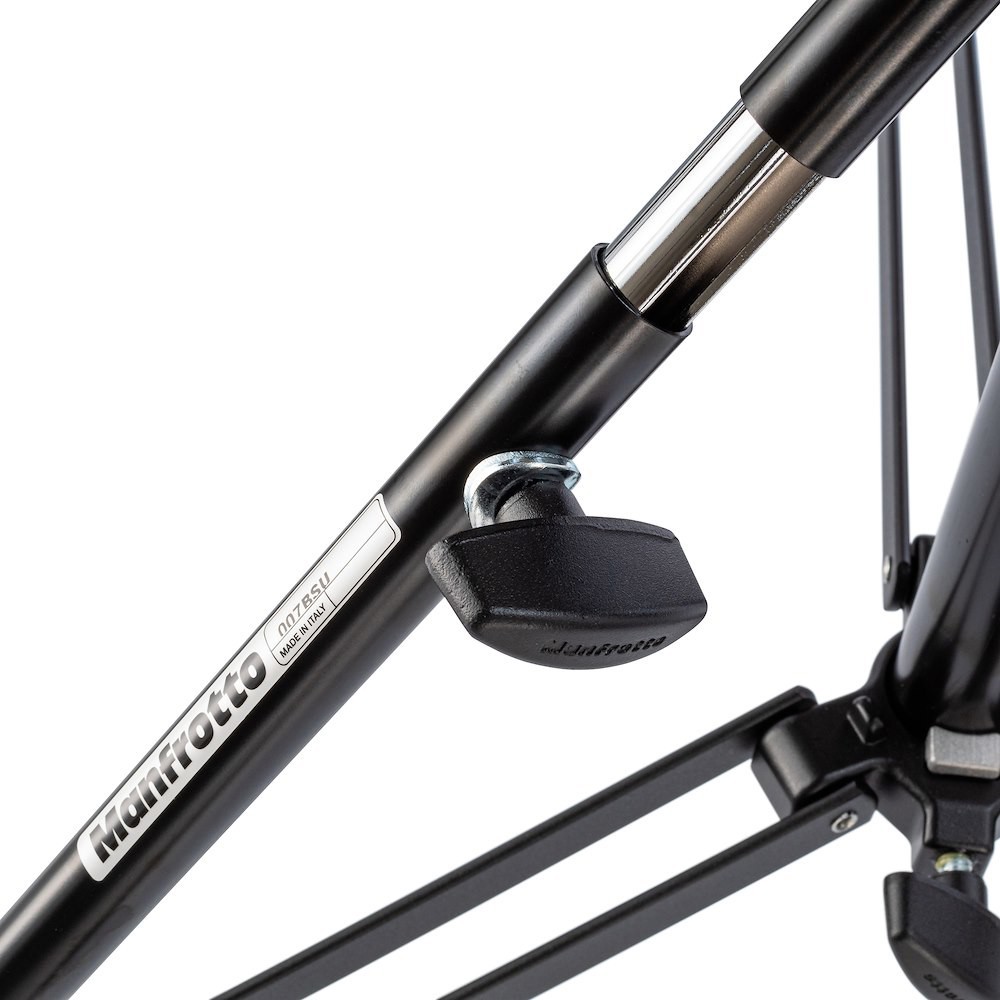 Der Manfrotto 007BSU Stand aus schwarz verchromtem Stahl ist ein robuster, dreiteiliger Ständer, der für professionelle Studio- und Außenaufnahmen entwickelt wurde. Mit seinen doppelt verstrebten Beinen, dem universellen 28-mm-/16-mm-Kopf, dem Nivellierbein für unebenen Boden und einer beeindruckenden Tragkraft von 20 kg eignet er sich perfekt für die sichere Befestigung von hochwertigen Beleuchtungsgeräten und Ausrüstung.