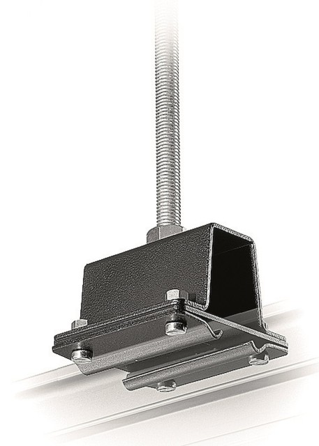 Die Manfrotto FF3214A ist eine hochbelastbare Deckenhalterung mit Gewinde (ohne Stange) für das Sky Track / Top System FF6000 Überkopfschienensystem. Sie wurde für die direkte Verschraubung oder Gewindebefestigung an ½″ (12–13 mm) Stangen oder Bolzen entwickelt und ermöglicht eine präzise Höhen- und Nivellierungseinstellung über Doppelmuttern. Außerdem bietet sie einen stabilen Befestigungspunkt für die Aufhängung von 4 m langen festen Schienen in professionellen Studios.