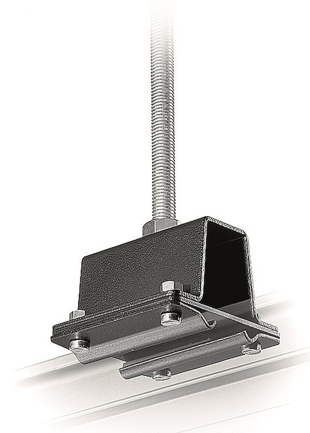 Die FF3214A ist die zentrale Deckenhalterung für permanente Sky Track-Installationen, wenn Sie Ihre eigene Gewindestange verwenden oder direkt in eine Deckenbalken verschrauben möchten. Die Halterung verfügt über eine große Grundplatte mit einer zentralen Gewindebohrung, die für Stangen oder Schrauben bis zu ½″ (M12–M13) geeignet ist, sowie einen integrierten Schienenbefestigungsbolzen an der Unterseite. Durch Einklemmen der Halterung zwischen zwei Muttern an der Stange können Sie die Schienenhöhe und -ebenheit nach dem Aufhängen der gesamten Schiene auf den Bruchteil eines Millimeters genau einstellen – entscheidend für einen perfekt gleichmäßigen Pantographen- und Schlittenlauf.