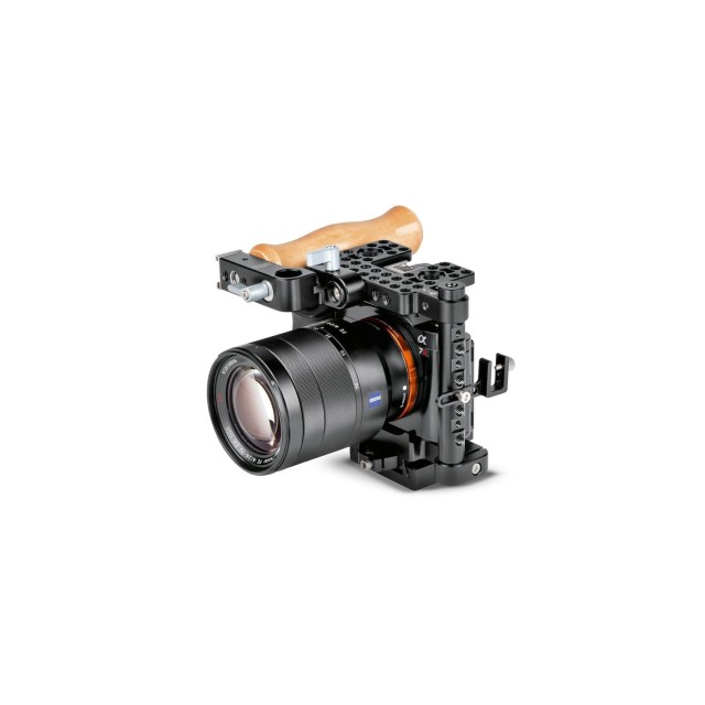 Der kleine Kamerakäfigwurde für Kameras der Sony A7-Serie und Panasonic GH5 entwickelt, die über ein oben angebrachtes XLR-Audiomodul für Tonaufnahmen verfügen.