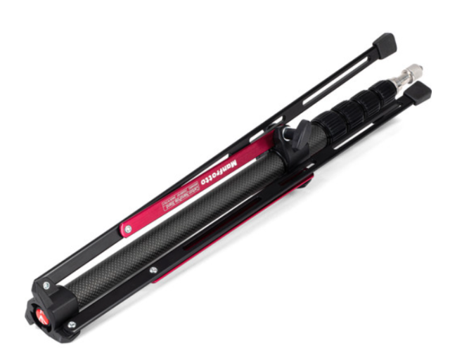 Der Manfrotto MS0490C Carbon Fiber Nanopole Stand ist ein 0,75 kg schwerer 5-teiliger Carbon/Aluminium-Hybrid, der sich auf 50,8 cm zusammenklappen lässt, auf 196,8 cm (min. 50 cm) ausziehen lässt und eine Tragkraft von 1,5 kg mit umklappbaren Beinen, 100 cm Standfläche, Nivellierfuß, abnehmbarer 5-teiliger Auslegerstange und 5/8"-Aufnahme + umkehrbarem 1/4"-20/3/8"-16-Bolzen bietet – und damit eine ultraleichte, handgepäcktaugliche Halterung für Blitzgeräte, LEDs oder Mikrofone vor Ort oder auf unebenem Gelände.