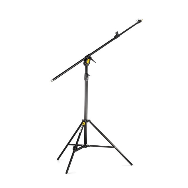 Der Manfrotto Combi-Boom-Ständer ist ein ultraleichter, 2,76 kg schwerer Ständer aus schwarzem Aluminium, der sich mit einem Klick von einem 3,9 m hohen Lichtständer (9 kg Tragkraft) in einen 191 cm hohen Überkopfausleger verwandeln lässt – perfekt für Haarbeleuchtung, Produktaufnahmen und kleine Studios.