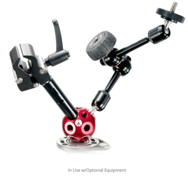 Das Manfrotto Dado Kit verwandelt einen einzelnen Stativ oder eine Superklemme in einen 360°-Mehrfacharm-Hub. Die rote Aluminiumkugel verfügt über sechs 3/8"-16-Innengewindebuchsen, die in einem präzisen geometrischen Muster angeordnet sind und die sechs mitgelieferten schwarzen 3"-Stangen (7,6 cm) aufnehmen, die jeweils an beiden Enden mit 3/8"-16-Innengewinden versehen sind. Stapeln Sie zusätzliche Dado-Stangen, Magic Arms oder Spigots, um LEDs, Lavalier-Mikrofone, Gobos oder Reflektoren in beliebiger Ausrichtung zu montieren.