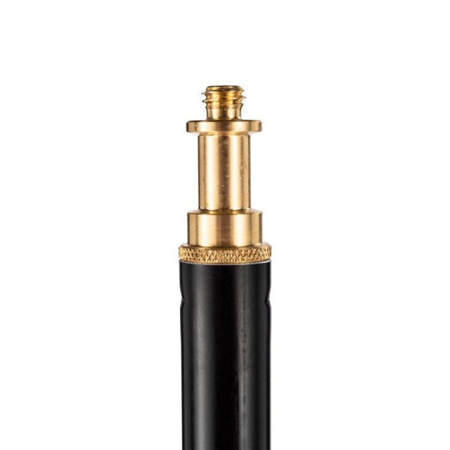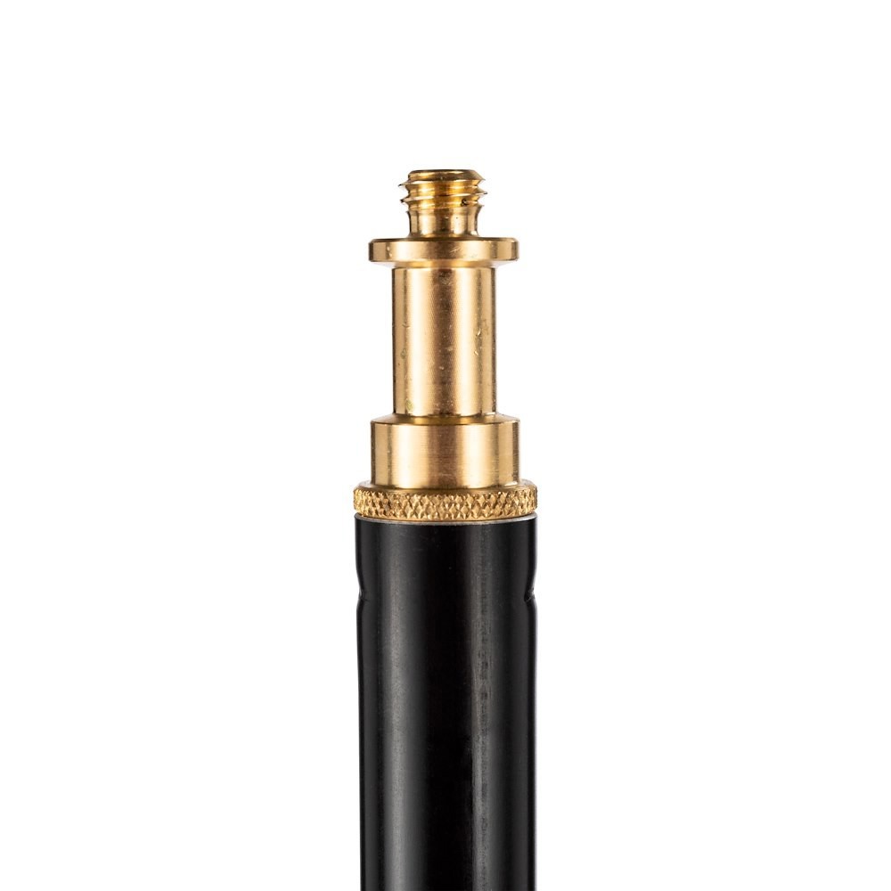 Die Manfrotto 099B ist eine 3-teilige, schwarz eloxierte Aluminium-Verlängerungsstange, die sich von 90 cm bis 235 cm ausziehen lässt und jedem Lichtstativ mit einer 5/8"-Aufnahme und einem 3/8"-Außengewinde für Leuchten, Ausleger oder Griffe eine zusätzliche Höhe von bis zu 1,45 m verleiht. Das Ganze wiegt nur 0,6 kg.