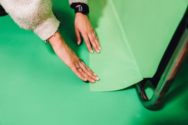 Die EzyFrame-Hintergrundabdeckungen enthalten eine kleine 15 cm lange Schürze an der Unterkante, die den Aluminiumrahmen verdeckt und es dem Benutzer ermöglicht, den Hintergrund bei Aufnahmen in voller Länge mit der von ihm gewählten Bodenoberfläche zu kombinieren.